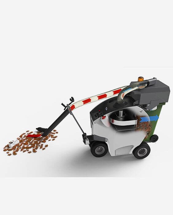 TSM ARIA 240 is the electric waste vacuum cleaner silent and with zero emissions, suitable for cleaning private and public areas, allowing cleaning operations at any time of day, even in crowded areas.